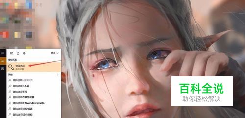 此时任务栏的“开始”图标右边会有个圆圈,点开它。点开后,在下面空白的搜索栏上输入“登陆选项”二字。此时上面会出现最佳匹配“登陆选项”链接,点开它。