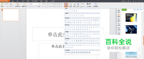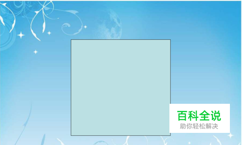 依次选择绘图工具栏(开始—形状)“自选图形”、“基本形状”、“矩形”按钮,单击鼠标或是按住Shift键,在幻灯片上绘出大小合适的正方形边框,如图所示,