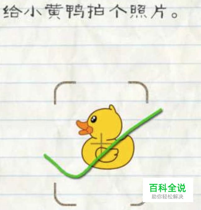 第37关,要给小黄鸭拍个照片。不用其他道具,直接摇一下手机,就会出现镜头方框,调整到方框正对着小黄鸭就行了,然后点击一下拍照就行了。