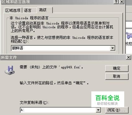 将app949.fon字体文件复制到C:\Windows\fonts\目录下;