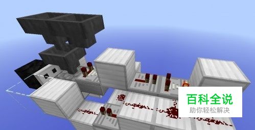 然后这边注意一下比较器检测的是投掷器上方的漏斗,并且比较器下面是半砖,防止点状红石充能到投掷器,并且红石火把前的中继器是满档,这一部分是控制活版门的: