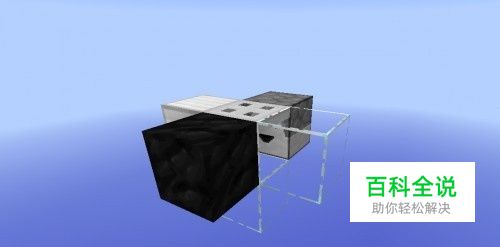 然后先做第一步:(注意左侧是实体方块,其次,栅栏门要依靠在煤炭块表示的这个位置的方块上)