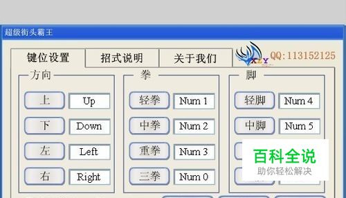 方向键控制上下左右,小键盘1轻拳,2中拳,3重拳,0三拳,4轻脚,5中脚,6重脚,Del键三脚。玩家也可以自己设定键位。根据操作来进行游戏操作。目标:把对方打败。