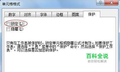 ④同样,在弹出的“单元格格式”窗口中选择“保护”,再将“锁定”前面的钩打上,确定;(如下图)