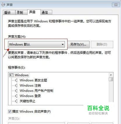 检查声音设置 进入电脑控制面板,找到声音设置,检查下是否是采用默认声音方案,如下图: