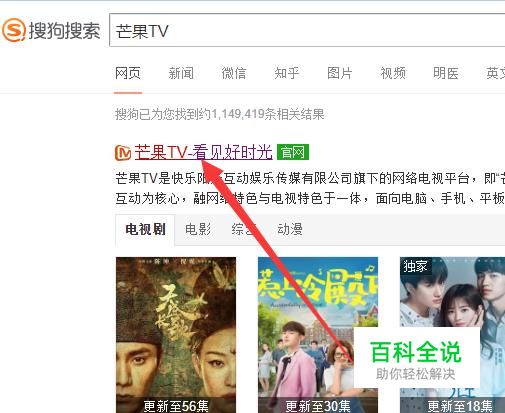 打开电脑,搜索“芒果TV”,点击官网链接进入到里面,如图所示。