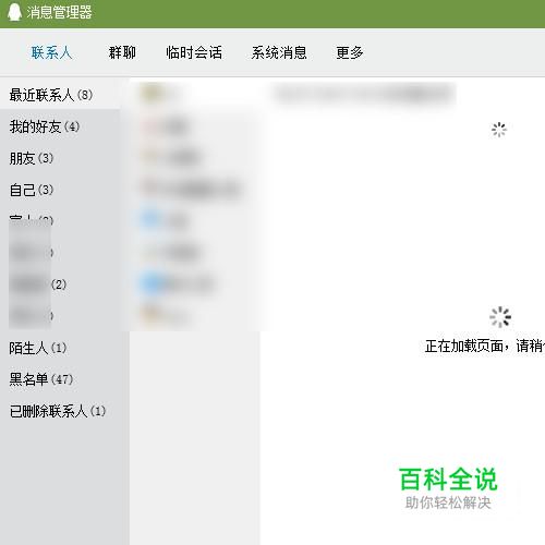 那么,这就打开了消息管理的个界面。 看左侧这里,有“已删除联系人”这一项。