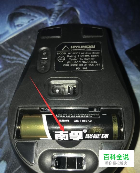然后把一节五号电池装进鼠标里面,然后盖上盖就可以了。