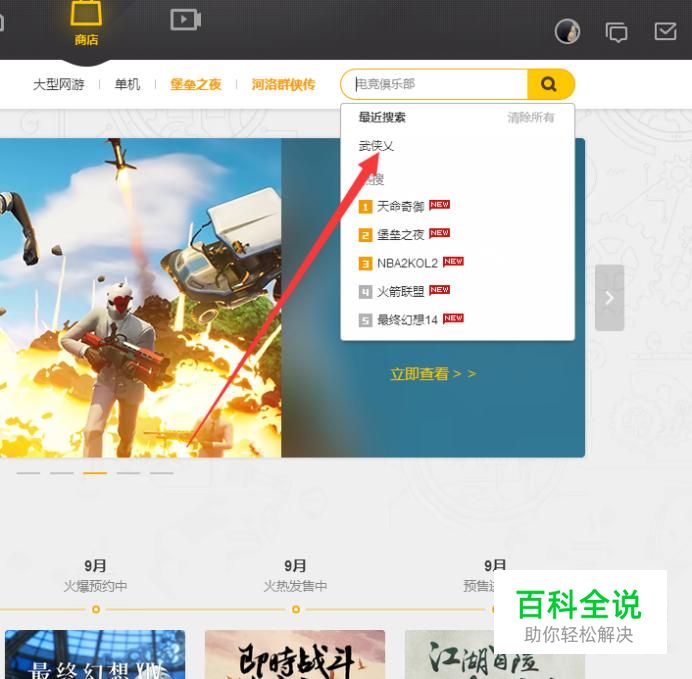 打开之后在商店找到输入你要找的游戏如下图。