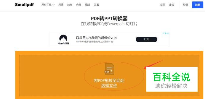 浏览器登录smallpdf的官方网址,找到PDF转PPT,如下图