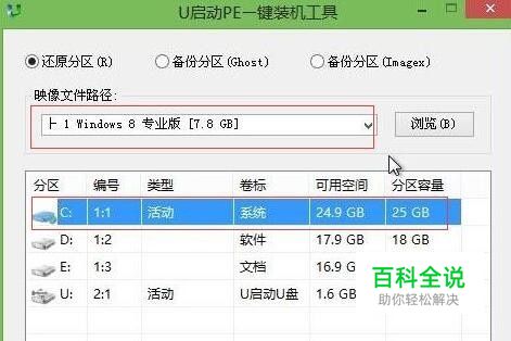 2、在装机工具中选择win8专业版镜像放在c盘中,c盘做为系统盘,点击确定,如图: