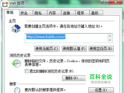打开Internet选项窗口中,点击“常规”选项卡下区域的“设置”按钮;