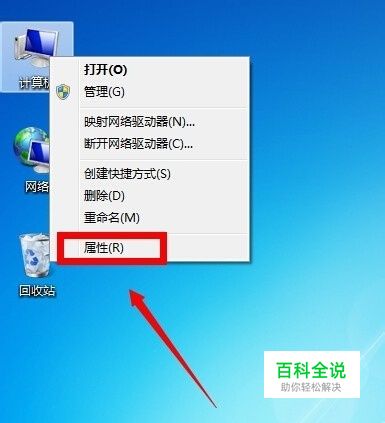 在桌面计算机图标上右键点击--属性,如下图所示