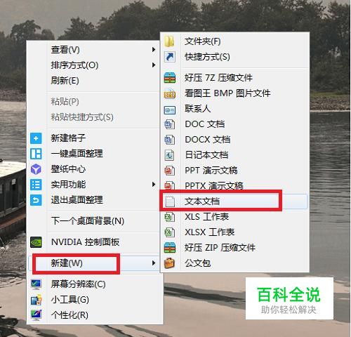 在电脑桌面或哪里的空白地方点击鼠标右键,在弹出的下拉菜单中找到“新建”“文本文档”,新建一个空白的文本文档,作为演示所用。