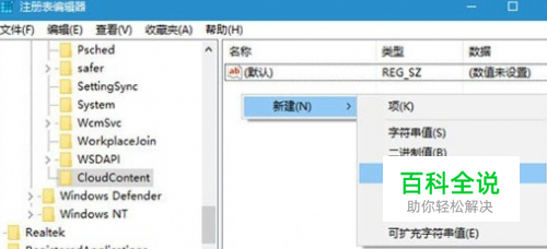 4、选中CloudContent项,在右侧新建名为DisableWindowsConsumerFeatures的DWORD(32位)值,如下图所示