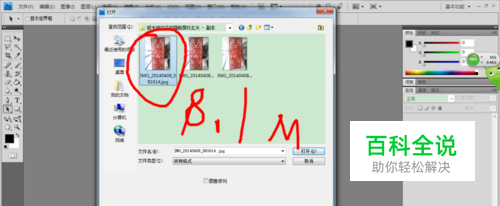 打开photoshop,选一张图片,看看它的储存大小,有8.1M