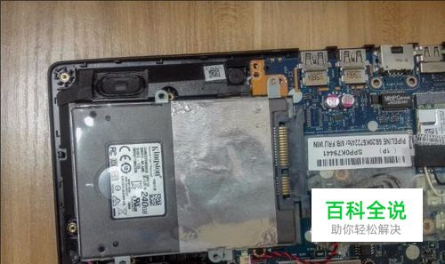 硬盘被四个螺丝固定在笔记本喇叭位置的一个角落,用螺丝刀取下四个固定螺丝。