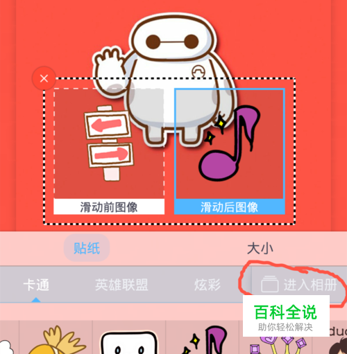 分别点击滑动前和滑动后的图案,直接在菜单中选图形,也可以进入相册选图片哦