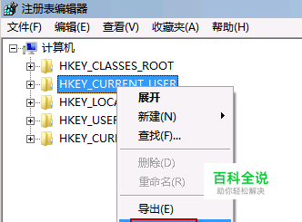 在注册表编辑器中,找到 HKEY_CURRENT_USER,右击选择“权限”。