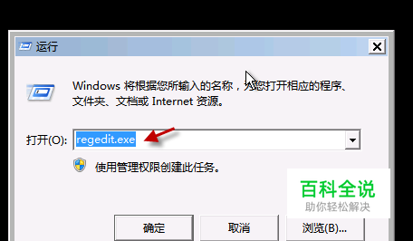 进入安全模式后,打开“开始-运行”,键入命令 regedit.exe,然后按回车键打开“注册表编辑器”。