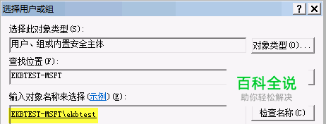 在“对象名称”一栏输入刚才记录的用户名,点击确定。