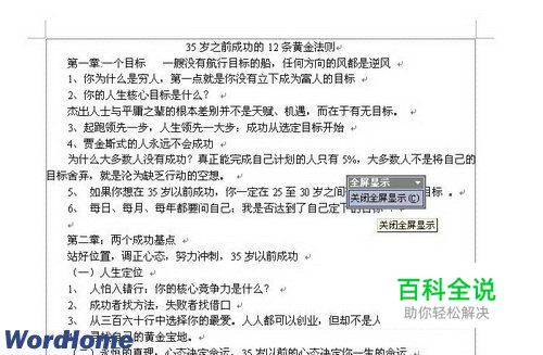 怎样在Word2003中打开和关闭“全屏显示”视图?