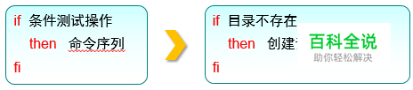 单分支的if条件语句结构,这种结构仅用if、then、fi关键词组成,只在条件成立后才执行预设命令,相当于口语的“如果……那么……”,属于最简单的一种条件判断结构,操作语法如图所示: 使用单分支的if条件语句来判断某个目录是否存在,若已经存在就结束条件判断和整个Shell脚本,而如果不存在则去创建这个目录: [root@linuxprobe ~]# vim mkcdrom.sh #!/bin/bash DIR="/media/cdrom" if [ ! -e $DIR ] then mkdir -p $DIR fi 因为第5章才会去学习用户身份与权限,此时继续直接用“bash 脚本名称”的方式来执行脚本即可,顺利执行脚本文件后正常情况下是没有任何输出信息的,咱们可以使用ls命令验证下这个目录是否已经成功创建: [root@linuxprobe ~]# bash mkcdrom.sh [root@linuxprobe ~]# ls -d /media/cdrom /media/cdrom