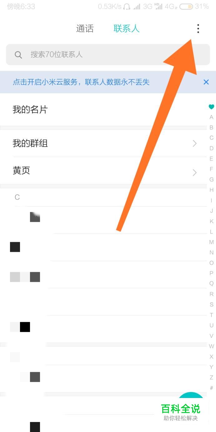 然后点击联系人界面右上角的菜单键。