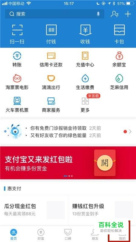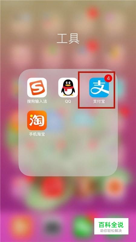 如下图,在我们的手机桌面上找到支付宝,并点击它。