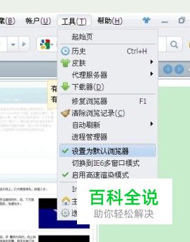 如果是曾经使用过,打开后没有出现这个对话框,那么当你打开浏览器的时候在菜单栏中点击工具。弹出下拉菜单,选择设置为默认浏览器即可这样就设置完成了