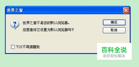 首先打开自己想设为默认浏览器的浏览器,如果是第一次启用的话,那么系统会自动出现询问是否设某一浏览器为默认状态。以世界之窗为例此时只需要点击确定则设为默认浏览器了。