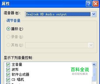 front pink in在哪 xp系统中电脑右下角小喇叭右键>打开音量控制,选项>属性,混音器选output那个如图