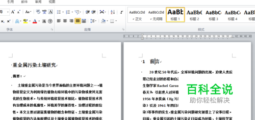 因为ppt只能识别标题,所以要对文件进行编辑。将重金属污染研究,设置为标题一、将摘要设置为标题二,摘要下内容设置为标题三。以此类推将前言设置为标题一,前言下内容设置为标题二依次编辑全文。