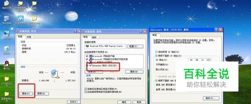 依次点击电脑右下角本地连接图标——属性——Internet协议,打开IP地址设置界面。.jpg