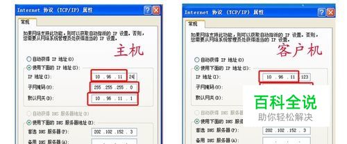 将主机和客户端IP前三段、子网掩码、默认网关设的完全一致,IP地址第四段不要一样。
