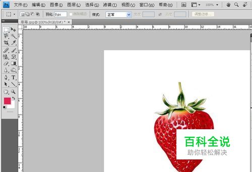 运用“套索工具”或者“魔棒工具”等工具把草莓选出来,如下图所示,在草莓的边缘有一个用黑白相间的“蚂蚁线”围成的选区。