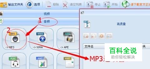 1、打开格式工厂,再点窗口左边的“音频”,再点下面的“MP3”,弹出MP3窗口。