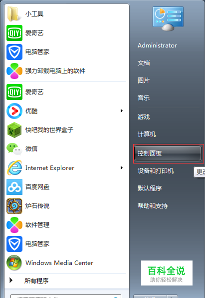 以WIN7为例,点击桌面左下角的“开始”菜单,接着单击“控制面板”