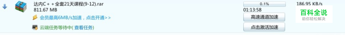 从百度网盘同时下载多个大型文件时(大型文件的压缩分卷、视频合集等),这些文件少则几百兆,大则一两个吉,用下载工具下载时往往会出现下载一部分后停止不动。 如图:
