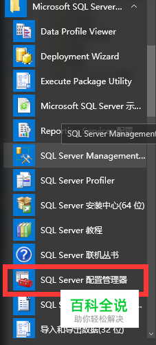 2.在开始菜单下找到并打开“SQL Server 配置管理器”,按如图的设置