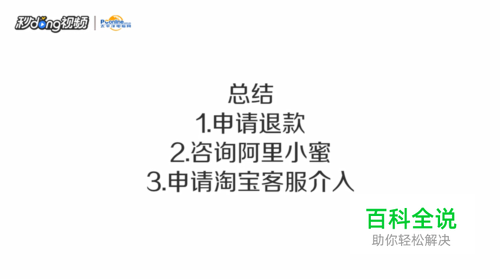 总结:1、申请退款。2、咨询阿里小蜜。3、申请淘宝客服介入。