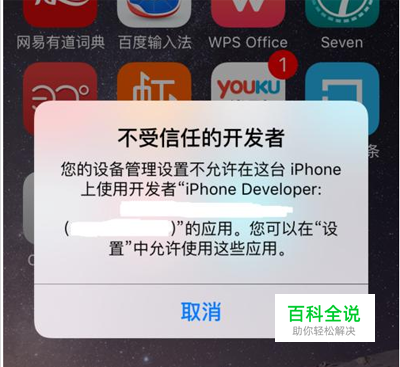 苹果手机对第三方的APP向来管控的非常严格,所以,不少苹果手机用户下载安装一款新的APP之后,就会被系统提示:“不受信任的开发者”对话框,认定该APP为不信任的APP,同时,提示款默认只有“取消”这一选项可以选择,所以,我们在安装APP的时候,需要手动添加信任。苹果手机提示:不受信任的开发者解决办法!