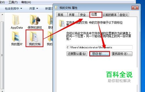右键"我的文档"-"属性",打开"位置",点击"移动"
