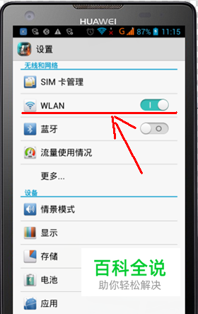 要实现共享的话,首先必须要打开WLAN.我们在手机中点击“设置”图标,进入之后我们把,WALN后边的圆圈加上点选中打开。