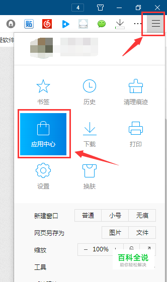 点击右上角的“设置”-“应用中心”