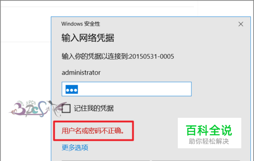 然后再尝试访问共享电脑,若还是不行,则在弹出的密码提示输入画面点击“更多选项”。