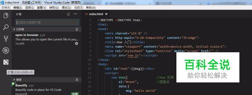 Visual Studio Code默认是在VScode的控制台下查看html页面,这对于我们调试和查看效果十分不方便。所以这里我们需要安装一下扩展插件,在浏览器中查看html页面。