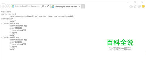 4、打开刚刚下载下来的文件。如下图,把location=和file=后面文本复制下来,变成http://client01.pdl.wow.battlenet.com.cn/bna/CN/a4669/SetupWin.mpq这样的地址。然后把这个文件下载下来,同样放到C:\ProgramData\Battle.net\Agent\中。注意,不要复制我这边的地址,一定要用你自己那边的,保证是最新版本!