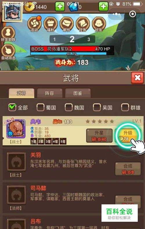 升级升星我们的武将: 要打到更后面的回合,战斗力一定要搞上去了,跟战斗力直接挂钩的,就是我们上阵着的武将的等级,用金币可以提高,碎片够的话,还可以升星,可以解锁技能的。