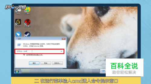 然后在窗口中输入“cmd”,然后点击“确定”